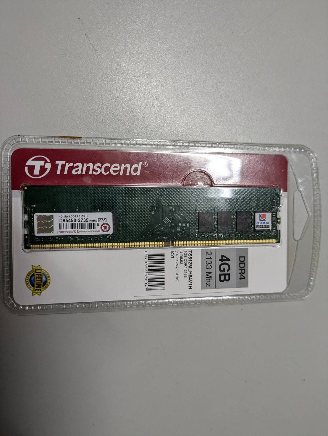 Transcend 創見4GB TS系列 DDR4 2133 桌上型記憶體(TS512MLH64V1H)